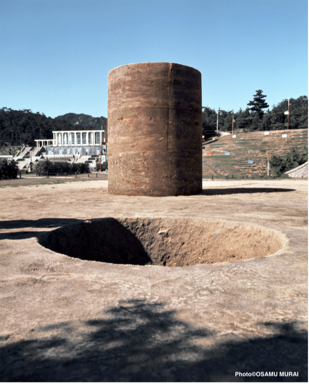 In 1968, Nobuo Sekine, then 26 years old, completed this piece, which stood at a height of 2.7 meters and a diameter of 2.2 meters. The project was carried out by Sekine and his university juniors, Susumu Koshimizu and Katsuro Yoshida, who together manually dug a massive hole in the earth. This act of excavation symbolized not only the creation of a void but also the formation of an equal mass of earth, evoking a notion of reversing or re-phasing the ground itself—a daring spatial expression of the land’s “phase.”